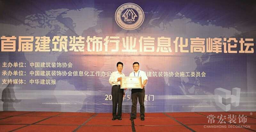 5月22日,首屆建筑裝飾行業(yè)信息化高峰論壇在美麗的廈門隆重舉行。常宏裝飾作為此次中國建筑裝飾協(xié)會增補(bǔ)為"中國建筑裝飾行業(yè)新型工業(yè)化科學(xué)研究院"的兩家企業(yè)之一,在大會上被授牌成立“新型工業(yè)化科學(xué)研究院”。至此,中國建筑裝飾行業(yè)科學(xué)研究院全國總數(shù)已達(dá)26家。