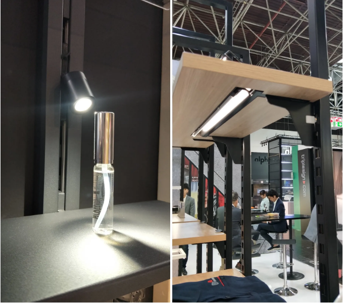 2、道具與照明結(jié)合緊密,進(jìn)行了一體化設(shè)計(jì)。無(wú)論是線條燈還是射燈,都采用獨(dú)立線路,觸點(diǎn)式接觸。