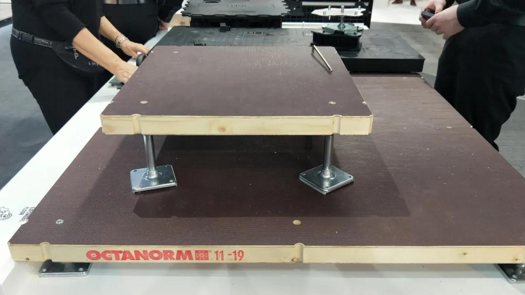 地面架空模塊。支座的調(diào)平可以在鋪設(shè)完基層板后進(jìn)行,底部空腔走線,頂部可以做地毯、地膠、地板等飾面。
