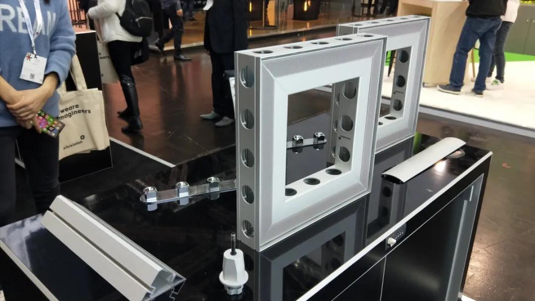 還有一款是今年新推出的墻板,厚度80毫米。面板可以是拉布,也可以是硬質(zhì)板,同時(shí)可以集成各類顯示設(shè)備和燈箱。