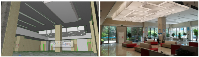 通過(guò)數(shù)字化技術(shù)進(jìn)行裝飾面層裝配式設(shè)計(jì)、排版及設(shè)計(jì)驗(yàn)證。檢修口使用裝配可拆卸方式取代傳統(tǒng)固定方式,與整體裝飾面層融為一體。而且吊頂裝配率達(dá)到100%,提高質(zhì)量,縮短工期,節(jié)約成本。經(jīng)推廣應(yīng)用,得到客戶的好評(píng),取得了良好的經(jīng)濟(jì)效益和社會(huì)效益。