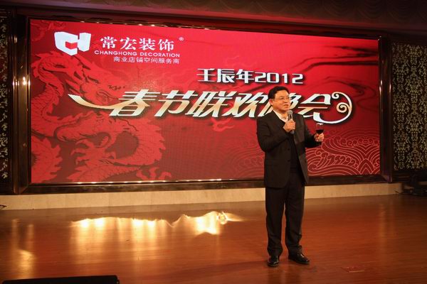 晚會在《好日子》中拉開序幕,12位美女的舞姿給現場染上了濃濃的新年氣氛。在熱鬧祥和的氣氛中常宏裝飾董事趙計存先生代表董事會致了2012年春晚賀詞,感謝全體員工的努力,完成了董事會的任務。常宏裝飾總經理王躍先生向所有來賓和全體員工及員工家屬致新年賀詞,在過去的一年中,常宏裝飾取得了有目共睹的成績:克服種種困難,業(yè)績穩(wěn)步增長,並先后在上海及古城正定建立了新的生產基地,規(guī)劃了公司未來五年的發(fā)展戰(zhàn)略……所有這些成就的取得,與常宏裝飾全體同仁的努力分不開、與全體客戶的長期支持分不開、也與社會各屆朋友們的關心和幫助分不開,感謝大家對常宏裝飾堅定的支持,并恭祝大家新年快樂、身體健康、家庭幸福、事業(yè)興旺!