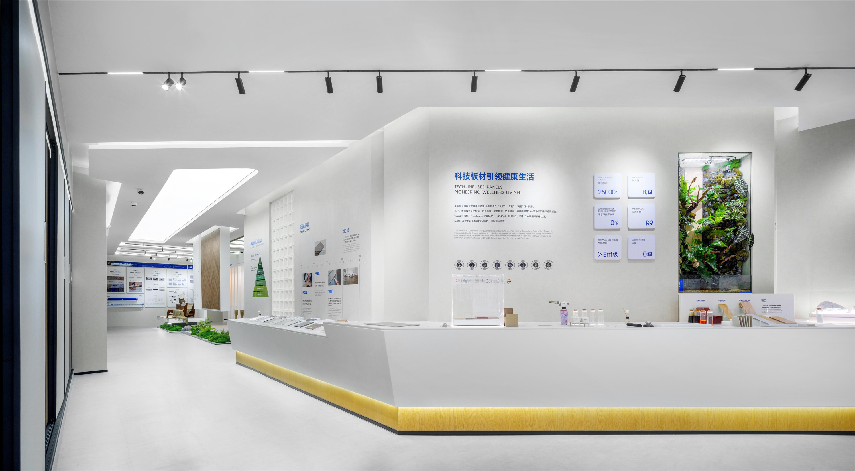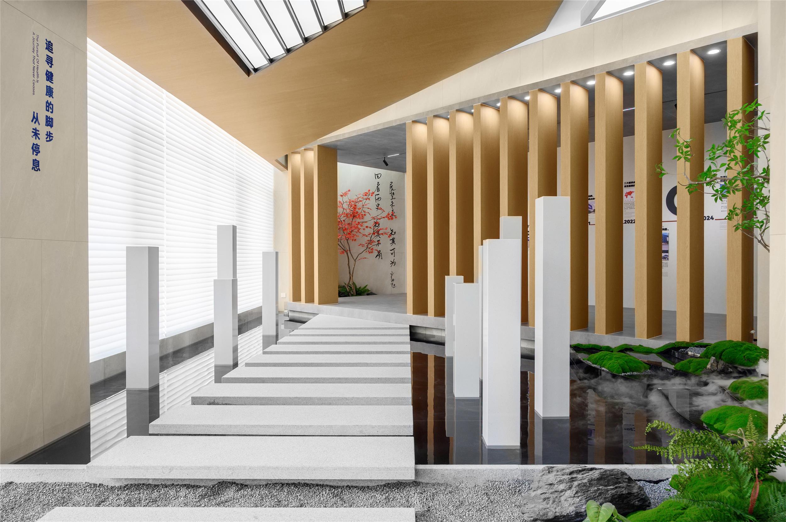 小藍(lán)鯨正定保稅區(qū)品牌形象展廳立足于企業(yè)歷史文化的戰(zhàn)略性總結(jié),以524平方米的一層空間為載體,融合品牌宣傳、產(chǎn)品展示、客戶接待等多重功能。作為連接辦公空間與生產(chǎn)園區(qū)的樞紐,展廳不僅承載著品牌形象的對(duì)外傳播,更通過設(shè)計(jì)的力量,將企業(yè)文化與創(chuàng)新精神具象化。